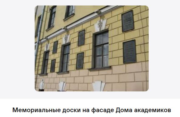 В 1948-1950-х годах по предложению президента АН СССР Сергея Ивановича Вавилова и по проекту архитектора Роберта Исааковича Каплана-Ингеля на фасаде Доме академиков были укреплены 19 мемориальных досок с именами живших здесь деятелей науки. На фасаде Дома академиков в Санкт-Петербурге, расположенном по адресу: 7-я линия Васильевского острова, 2/1, лит. А, установлена мемориальная доска в память о В. В. Петрове.