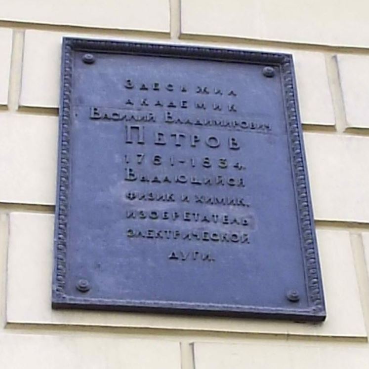 Только в 1892 году, при обустройстве Императорской военно-медицинской академией центрального электромашинного здания для электрического освещения, Конференция с Высочайшего соизволения посвятила всё сооружение электрического устройства памяти Петрова и установила по этому случаю в машинном зале особую мраморную доску с соответственной надписью.
