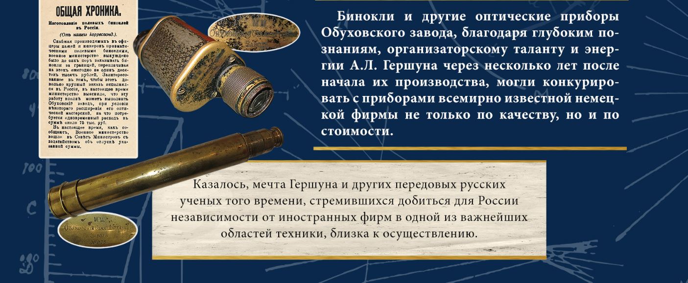 Благодаря умелой организаторской деятельности А.Л. Гершуна оптический отдел Обуховского завода вскоре превратился в первоклассное оптическое производство, которое успешно могло конкурировать с пользовавшимися мировой известностью иностранными оптическими фирмами Цейса и Шотта.