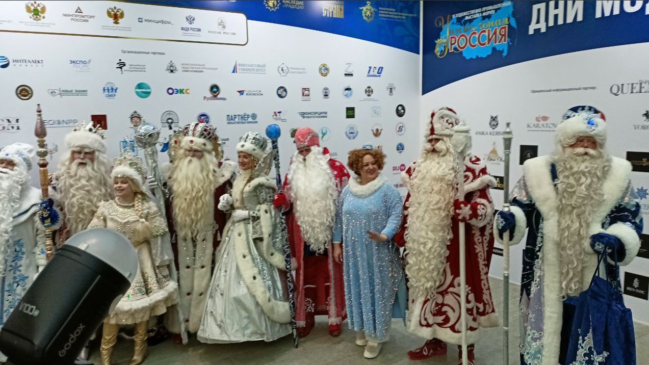 В день открытия выставки состоялся парад Дедов Морозов с разных регионов России - из Великого Устюга, из Коломенского, уральского, дагестанского и др.