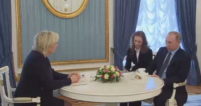 Марин Ле Пен, глава «Национального фронта» и претендент на президентское кресло во Франции, рассказала на заседании комитета Госдумы по международным делам о своём видении отношений Москвы и Парижа и перспективах их взаимодействия по актуальным проблемам. Среди последних она назвала борьбу с терроризмом и фундаментализмом. Помимо этого она посетовала на несамостоятельность Франции в международных делах, раскритиковав позицию её нынешних властей по отношению к Украине и выразив в этом вопросе поддержку России.