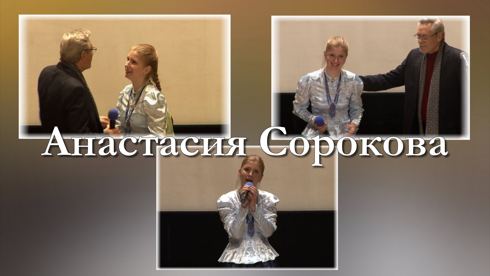 С того времени, как Анастасия Сорокова получила известность, она только творчески росла и отшлифовывала свой оригинальный талант, которым восхищается народный любимец – выдающийся отечественный актёр Александр Михайлов, знакомый нашему кинозрителю хотя бы по таким легендарным фильмам, как “Белый снег России”, “Мужики!”, “Любовь и голуби”, “Очарованный странник”…