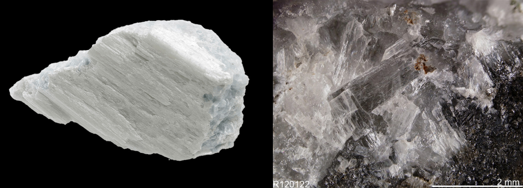 Слева: Природные кристаллы из Нездице, Чехия. Справа: Макрофотоснимок синтетического образца (RRUFF ID R120122).