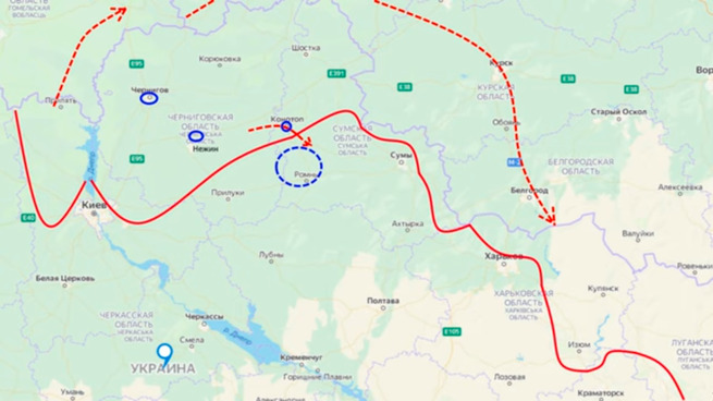 Огромные колонны российской техники перемещаются через Белоруссию, Черниговщину и Конотоп.