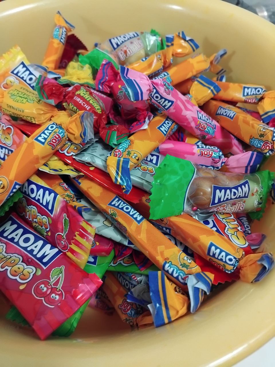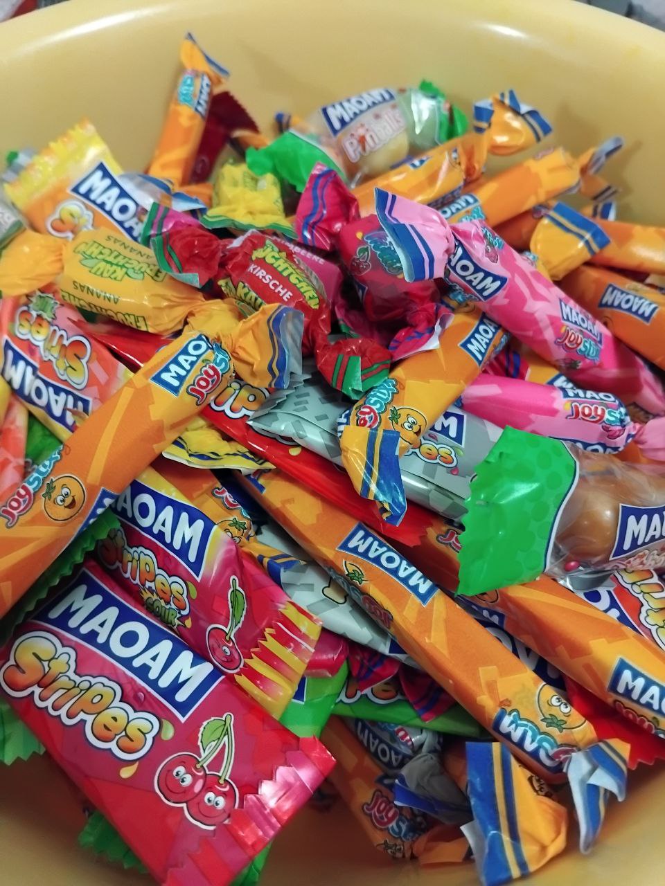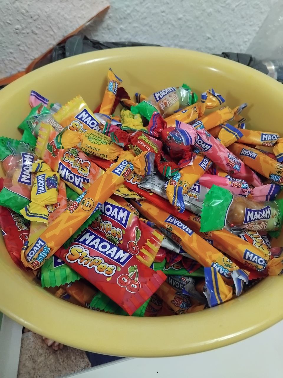 Мы с сыном накупили конфет, дети начнут ходить как стемнеет, в костюмах, короче надо расплачиваться конфетами, пароль : зюс одер зауер ...