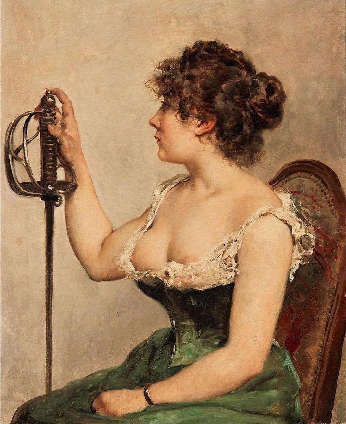 «Молодая женщина со шпагой» Жюля-Эли Делоне (1828-1891).