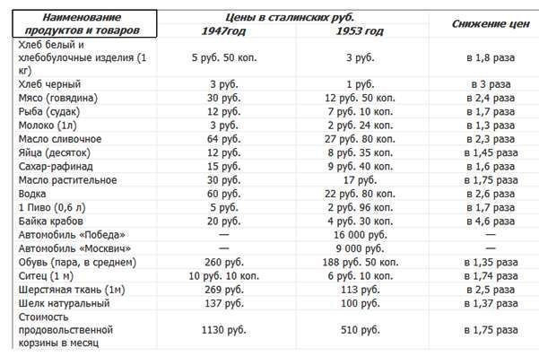 Ежегодное снижение цен было возможно благодаря тому, что Сталинская экономика функционировала без капиталистических паразитов – посредников и перекупщиков; и происходило оно не в ущерб и не за счёт бюджета, а благодаря умелому снижению себестоимости производства.
