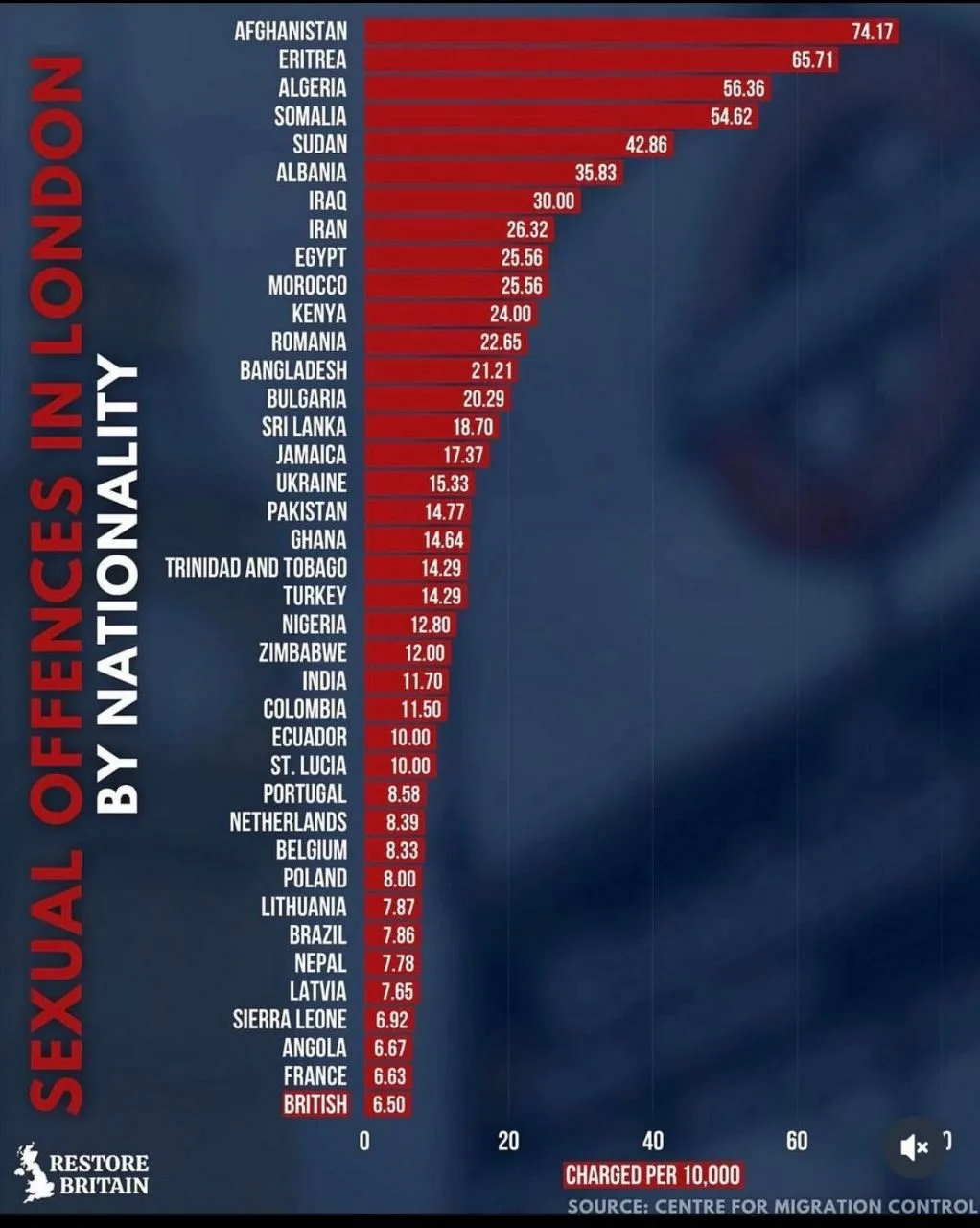 Каждый месяц я публикую статистику изнасилований в Лондоне, где Афганистан на первом месте. Источник