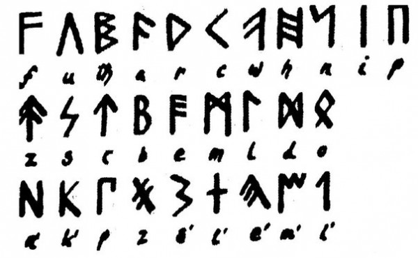 Лично мне эти алфавиты показались как минимум родственными, исходящими из одного корня. Теперь, давайте посмотрим древнерусские рунические надписи.