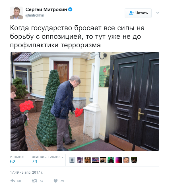 Наряду с безликими моральными уродами из социальных сетей внесистемные оппозиционеры, как по команде, старались создать новый антироссийский тренд. Западники откровенно спекулировали гибелью людей, используя трагедию в качестве очередного выпада в сторону Кремля. Дмитрий Гудков соотнес теракт в Петербурге с недавними митингами школьников и студентов, поддерживающих Навального. Его коллега по «Яблоку» Сергей Митрохин обвинял государство в бездействии по отношению к террористам.
