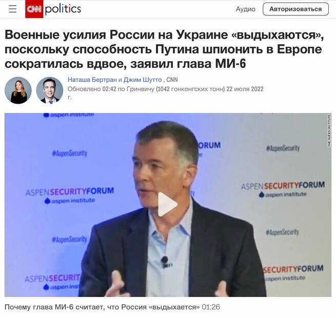 Вот прям очень скоро начнет, ибо Ричард Мур, глава британской разведки (это теперь конкуренты британских ученых по изречению сентенций, которые вводят думающую публику в состояние перманентного ступора), сообщил, что Россия вот-вот выдохнется, все ее бомбы и ракеты уже практически закончились, и России понадобится передышка в несколько недель, и вот тут-то Зелебобик ка-а-аак вдарит, так сразу и переломит ход войны...