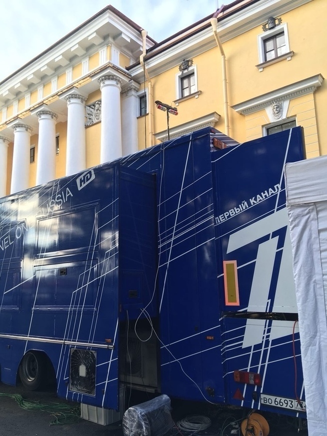Это ПТС (передвижная телевизионная станция) Первого канала - сверхсовременная высокотехнологичная, напиханная под завязку дорогущим оборудованием.