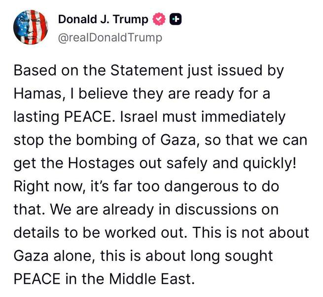 ХАМАС согласился освободить израильских заложников - в соответствии с мирным предложением Дональда Трампа по сектору Газа.Бое...