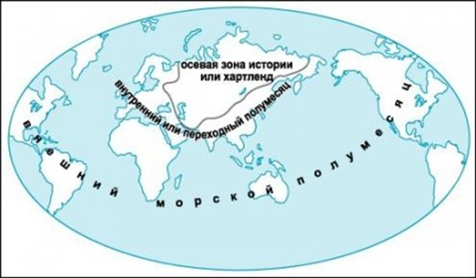 Зона «внутреннего полумесяца» испытывает на себе постоянное давление «разбойников суши» — в трактовке Хэлфорда и «разбойников моря» или островных жителей. Таким образом Маккиндер приходит к выводу, что история вращается вокруг географической, континентальной оси мира – «Оси Истории», как иногда называл Хартленд в своем первом труде сэр Хэлфорд. Приведу известную цитату Маккиндера, подтверждающую наши выводы: «Кто правит Восточной Европой, тот владеет Хартлендом. Кто правит Хартлендом, тот владеет Мировым островом. Кто правит Мировым островом, тот владеет миром».