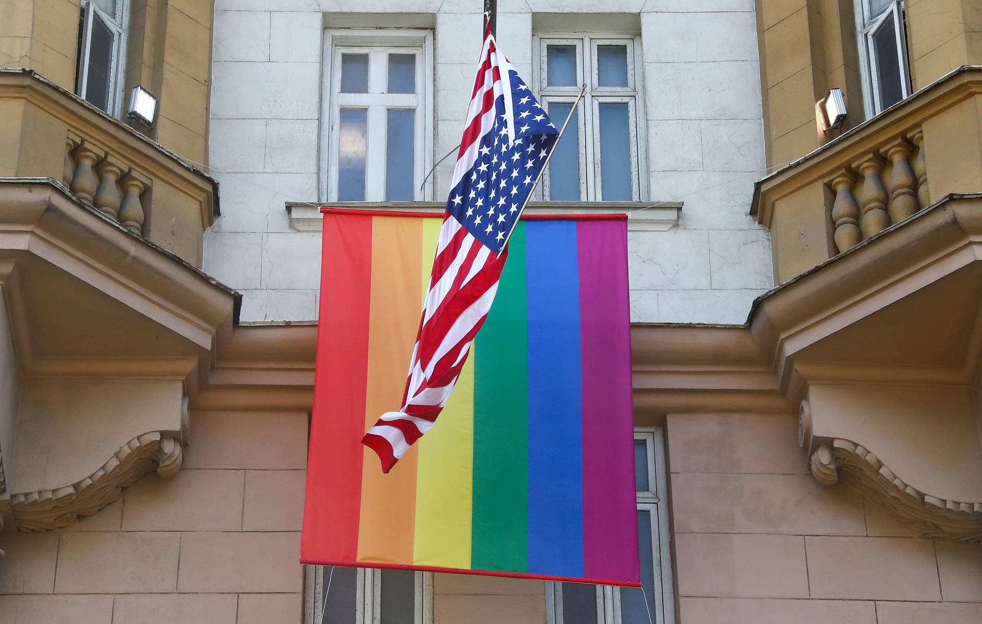 В американском посольстве заявили ТАСС, что "флаг ЛГБТ был создан американским художником и активистом Гилбертом Бейкером и впервые был поднят как символ надежды и разнообразия 25 июня 1978 года во время парада в честь Дня свободы геев в Сан-Франциско". В посольстве также сказали, что июнь - это Месяц Гордости, когда американцы празднуют, "что каждый человек заслуживает жизни, свободной от ненависти, предрассудков и преследований".