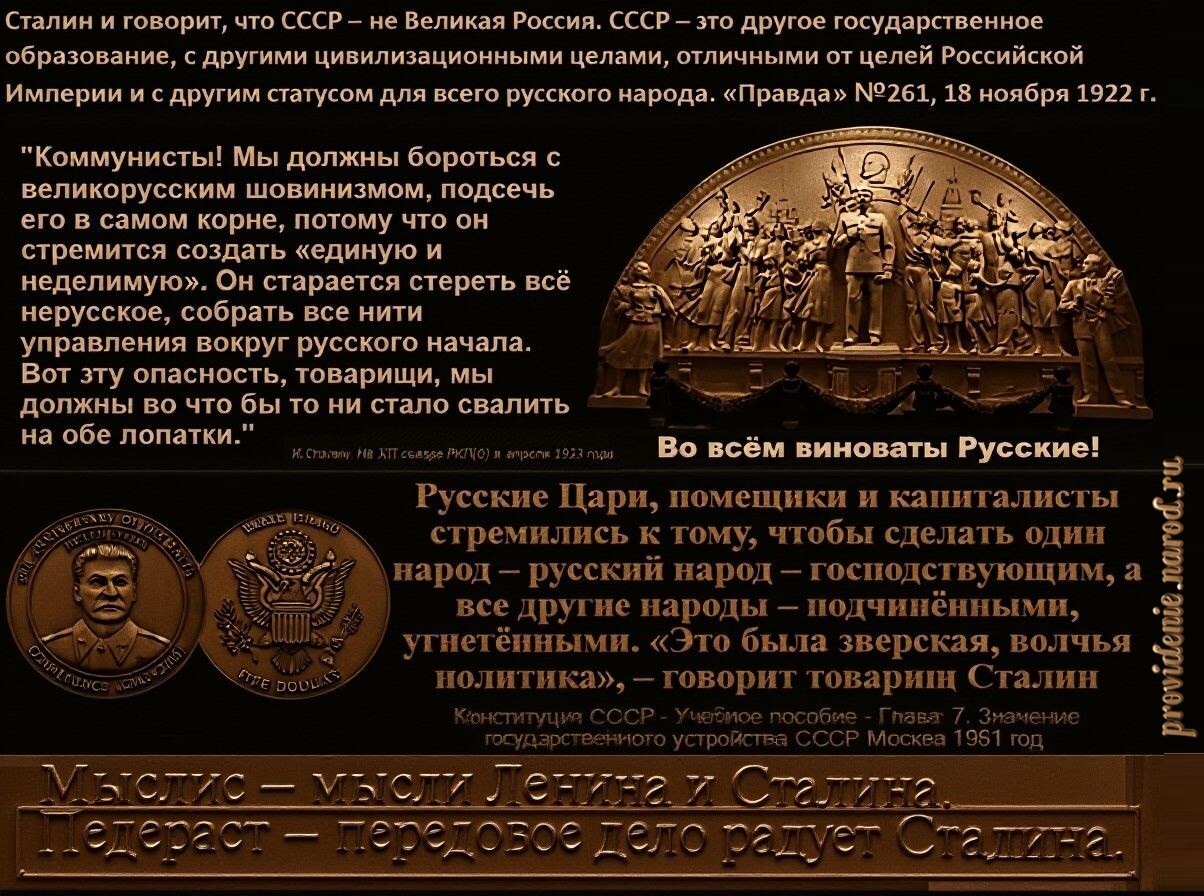 Письмо тирану. От Анны Алексеевны Павловой. Да неужели тебе не надоело, тиранъ русскаго народа, со своими паразитами-коммунистами играть комедію? https://cont.ws/@providenie/30... Необходимо каждый день показывать по всем каналам ЭТИХ красных "ждунов". Которые мечтают русских поместить в "Ипатьевский подвал". И русский народ должен точно знать, кто его отправил защищать вот это "светлое марксистское будущее!" Видео https://cont.ws/@providenie/30... Правовые основания декоммунизации. https://cont.ws/@providenie/26... РФ сегодня занята возвратом мордехайству Совка. А вот почему РФ не занимается возвратом России русским. Непонятно. Этот вопрос к кому нужно адресовать? https://cont.ws/@providenie/30...