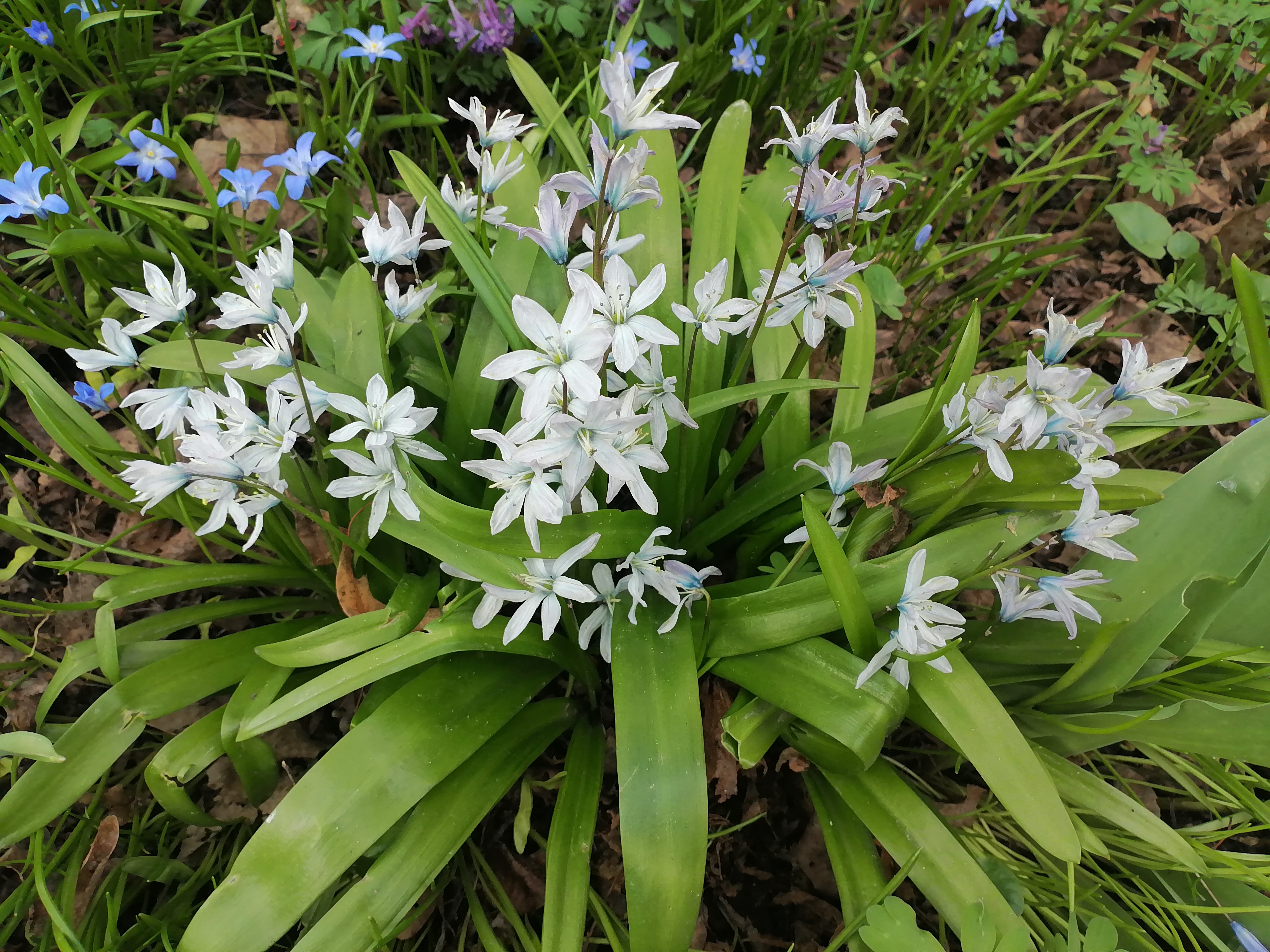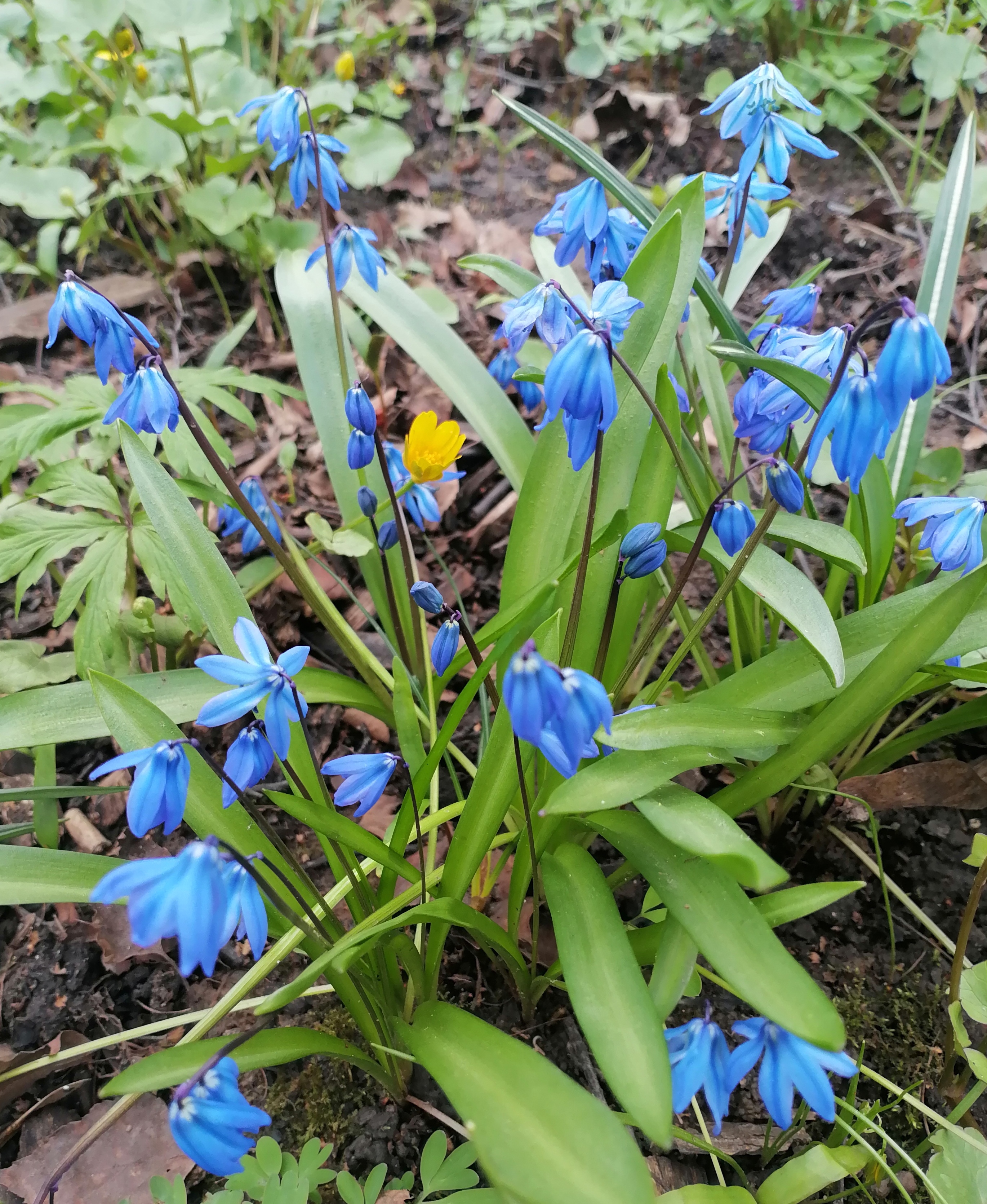 Пролески все ещё синеют в свежей сочной траве. И многие первоцветы ещё  бодро раскрывают венчики навстречу солнцу.