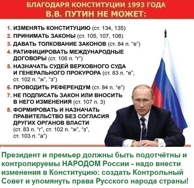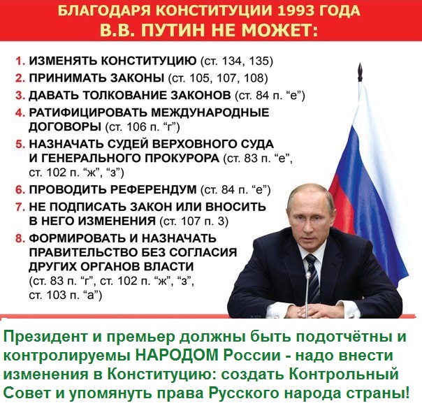 1) Народ России грозно молчит! И это молчание не вечно – понимают ли это наши «гениальные вожди»? Похоже, что не понимают и награждают ЗА АНТИГОСУДАРСТВЕННУЮ деятельность агентов Госдепа США (Алексееву, Горбачева), строят «мемориалы» («дом Ельцина», «музей Толерантности»), стыдливо прикрывают мавзолей Победы фанерками (ведь мавзолей – это не «память о Бланке-Ленине-Рейнштейне», а ПАМЯТЬ о Параде Победы 1945 года!).