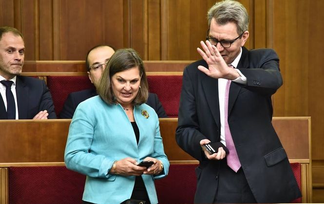 Нуланд смотрит на депутатов Рады и в их лице на всех украинцев как на... настоящих друзей, равных себе демократов и великих европейцев. Чтобы полюбоваться, как потомки древних протоукров с радостью выполняют все требования Вашингтона.