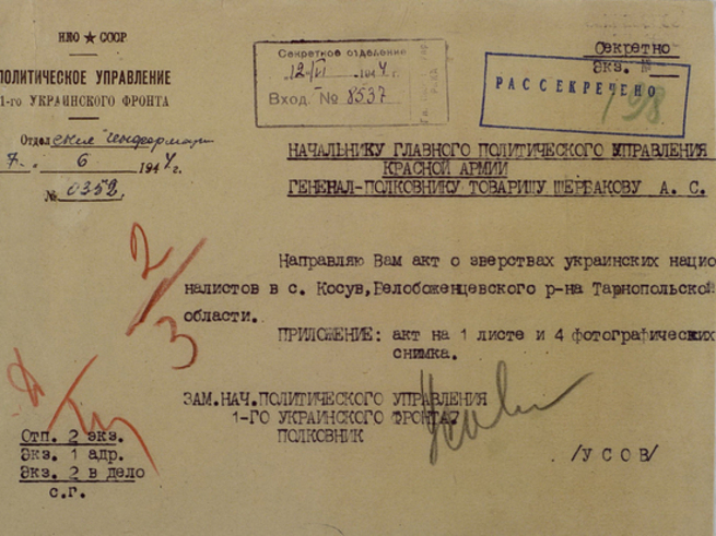 В Министерстве обороны подчеркивают, что обнародование документов из фондов Центрального архива военного ведомства направлено на сохранение исторической памяти и правды о кровавых массовых преступлениях украинских националистов против своего народа, которые последние годы намеренно предавались забвению украинскими властями.