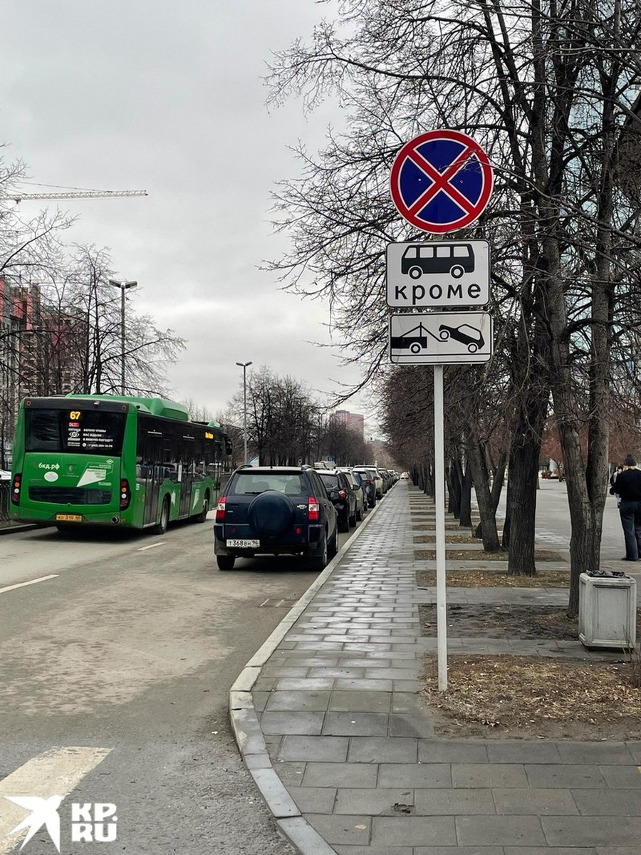 Екатеринбург великолепный город с воспитанными жителями, и весьма высокой культурой автовождения. Но почему-то именно на улице Бориса Ельцина, прямо под знаком «остановка запрещена», аккуратно в ряд припарковались легковушки, перегородив половину дороги. Будто аура девяностых накрыла - мне на всех плевать, паркуюсь как хочу.