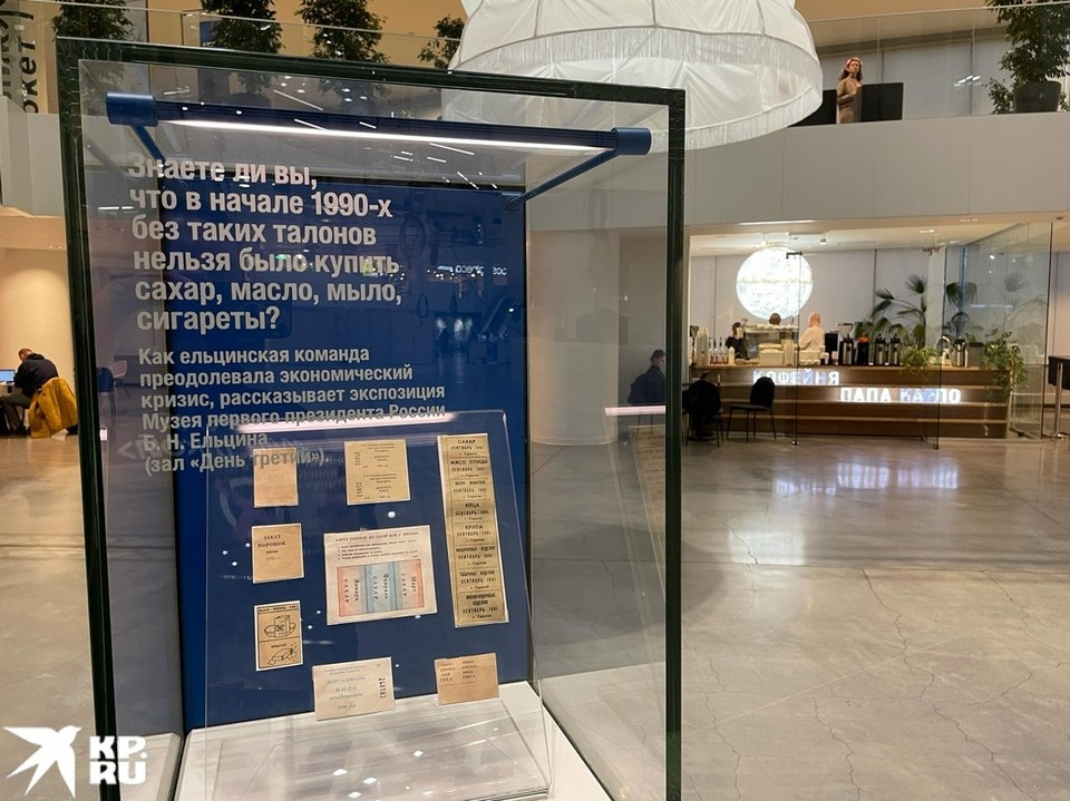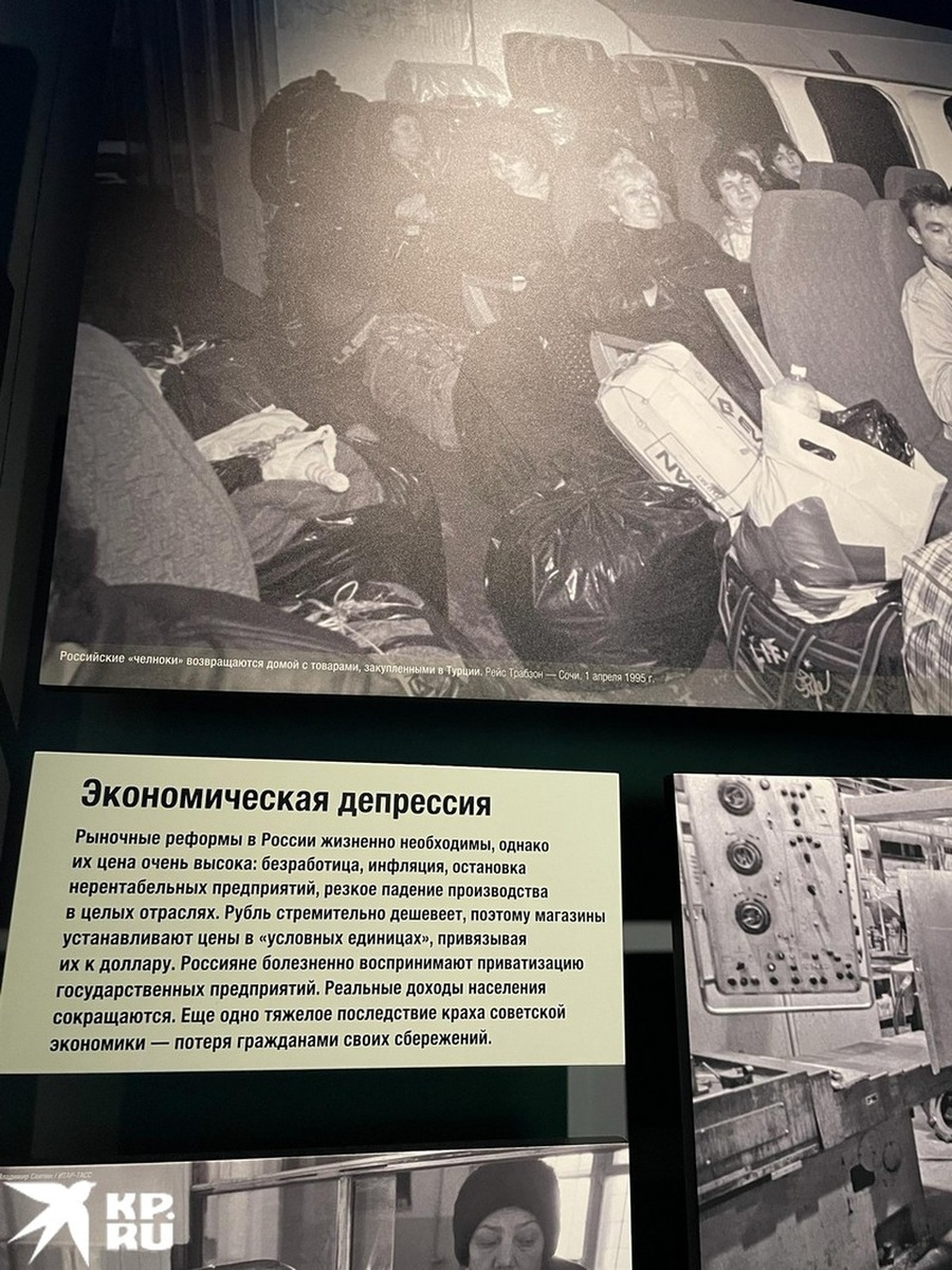 В экспозиции девять залов. Каждый из них ярко выражает тот или иной период из девяностых - путч, инфляцию, выборы, отречение…