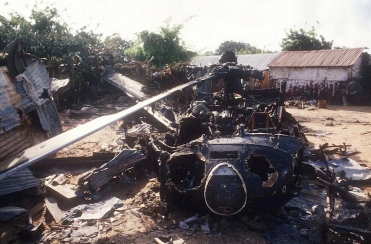 План операции был мгновенно сорван. Вместо отхода вся группа «Рейнджер» и «Дельты» получила приказ двигаться к месту крушения для организации обороны и спасения уцелевших. К вертушке немедленно направился спасательный вертолет с медицинской командой и группой прикрытия. Им удалось извлечь из обломков двух тяжелораненых бортовых стрелков, тела пилотов остались в кабине. Легкий вертолет MH-6 сумел сесть рядом с обломками и забрать еще двоих раненых. Тем временем основная группа спецназа, численностью около 90 человек, пробивалась к месту падения под шквальным огнем. Они заняли оборону в зданиях вокруг обломков, превратив район в импровизированную крепость.