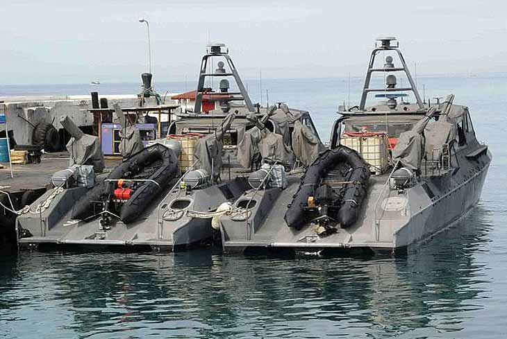 Вот такие, как ниже. На фоне увешанных оружием американских катеров, (тех что выше), как-то не смотрятся... А из РСЗО по катеру при морском волнении ещё попасть надо умудриться...