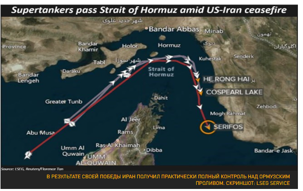 В результате своей победы Иран получил практически полный контроль над Ормузским проливом. Скриншот: LSEG Service