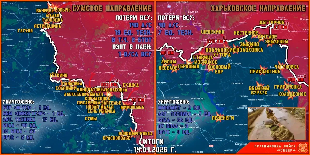Карта продвижения группировки «Север», 14 апреля 2026 г.