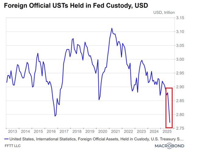Центральные банки впервые с 1971 года имеют больше золота, чем казначейских облигаций США. Золото: 23%. Казначейские облигации: 22%. Это не тенденция. Это переломный момент.