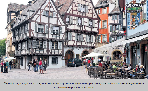 Каркас-клетку строили из дерева, которое было уже в дефиците. А промежутки заполняли чем угодно - глиной, соломой, булыжниками, кирпичами и даже, пардон, сушеным коровьим дерьмом. Все это красиво красили, цветочки под окно - и приходи, кума, любоваться.