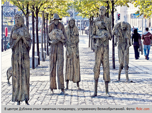 Самый высокий прирост населения в XIX столетии демонстрировала Британия. Поэтому на ее совести и первый искусственно организованный голодомор - в Ирландии. Это случилось в 1845 - 1849 годах. В России еще существовало крепостное право, и каждый помещик был обязан раздавать хлеб крестьянам в неурожайные годы. А в Ирландии крестьяне являлись «лично свободными». Только без земли. Они ее арендовали у британских дворян, захвативших эту страну еще в XVII веке.