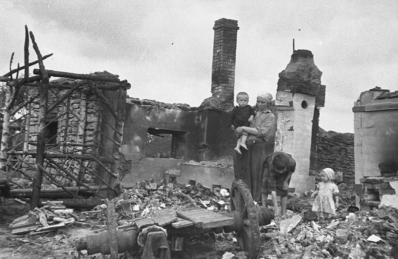 Гитлеровцы "дополнили Минские соглашения" Сталина в разрушенной ими русской деревне