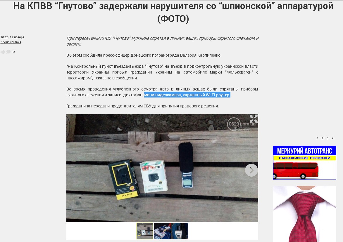В Мариуполе оказывается рагули не знают, что диктофон - это не средство шпионажа, а мини-видеокамера, карманный WI-FI роутер - продается в открытом доступе... Но рогулям этого не докажешь, поэтому человека отправили в СБУ, где "доблестные" представители СБУ обязательно найдут причину его оклеветать и запихнуть в предстоящий обмен, это у них ловко получается...