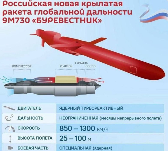 БУРЕВЕСТНИК, ЭТО ЧТО? Заявлено: Крылатая ракета с воздушно реактивным двигателем может находиться в полете «месяцами»? И еще: Высота полета 25 (60) – 100 метров над землей. Странная какая-то ракета! Может «инсайдеры» поторопились с информацией? Меня интересует один вопрос – максимальная высота полета ракеты в режиме «многомесячного патрулирования»...