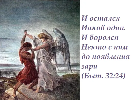 Иаков борется Ангелом, то есть "сам с собой", со своими мыслями.