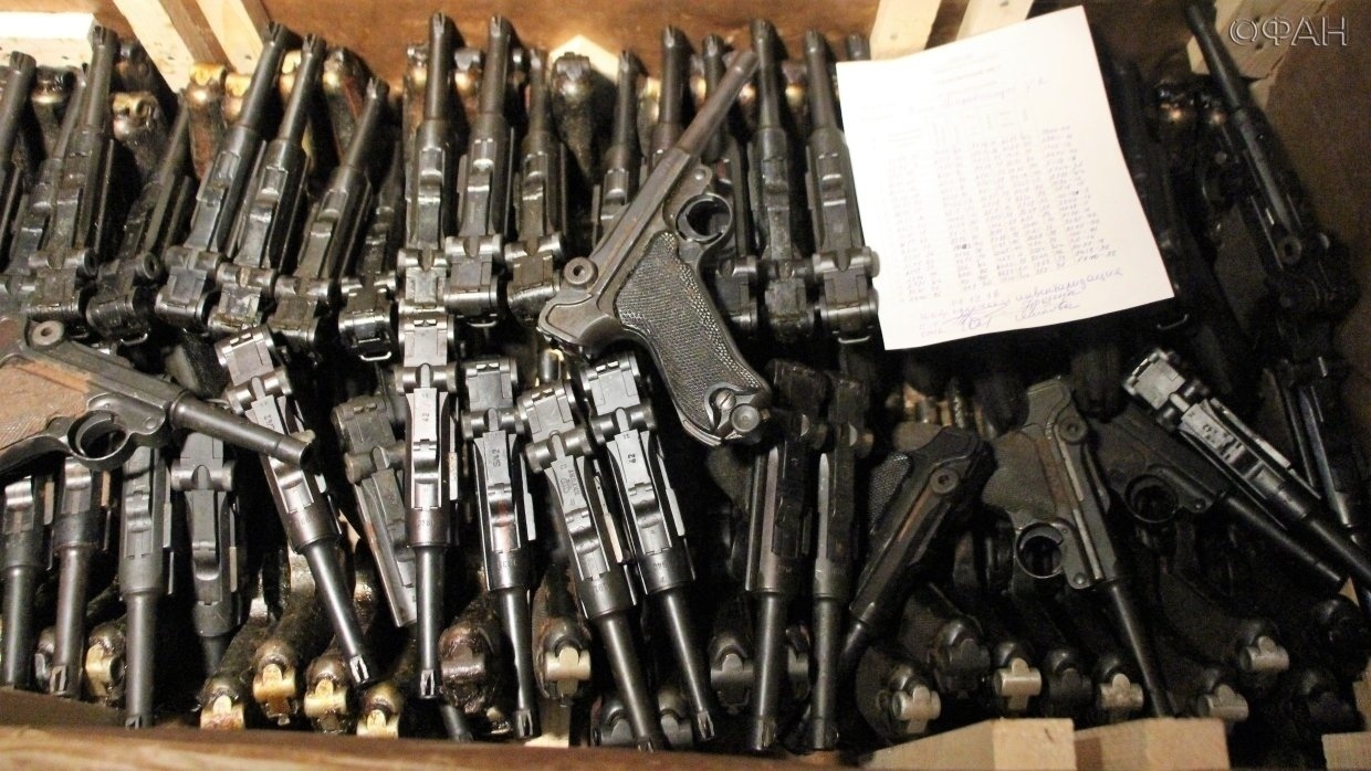 Степень сохранности оружия была просто потрясающей. Впрочем, это и неудивительно. Некоторые из оказавшихся в ящике «Парабеллумов», также известных как «Люгеры», были выпущены еще до начала Второй мировой войны. Однако на фронт эти P08 попасть так и не успели, перекочевав в арсеналы Красной Армии прямиком с захваченных немецких складов.
