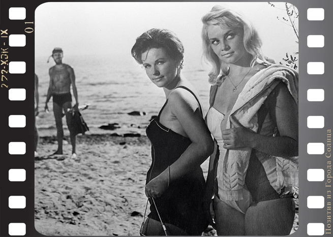 Наталья Фатеева и Наталья Кустинская на съёмках фильма Генриха Оганесяна "Три плюс два"