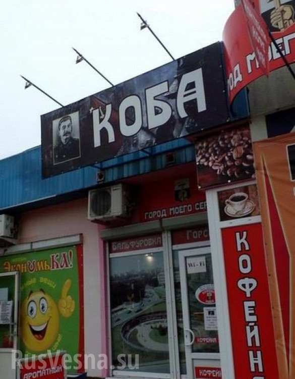 «На фото изображено кафе под названием «Коба». Как известно, «Коба» — это прозвище Сталина, именно так его называли в Грузии. Вход в кафе украшает портрет советского диктатора Иосифа Сталина», — пишут журналисты незалежной.