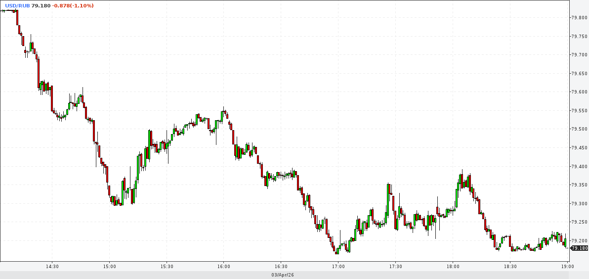 Рассчитанный по цене золота курс доллара на 6 апр.: 11699/(4677/31.1) = 77,8 +/-2,1. В пределах погрешности лежит как курс на Форекс (см. заставку), так и курс от ЦБ РФ - 79,73