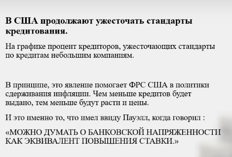 Как это не странно, но ФРС в принципе радо росту отказов, и ужесточении в выдачи кредитов. Не смотря на последующую рецессию. Возможно уже устали ждать "мягкую посадку экономики США и согласны на любую...