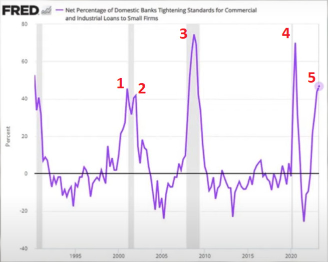 1 - пузырь доткомов ; 2 - Теракт "Башни близнецы"; 3 - Ипотечный пузырь; 4 - КОВИД-ный кризис; 5 -сегодняшняя ситуация с кредитами уже превысила "пузырь доткомов" и последующую рецессию...