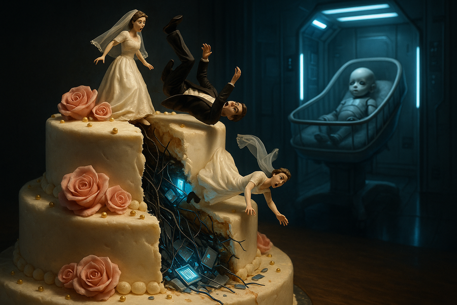 1. Техногенные формы семьи: искусственное размножение, «человеческие фермы», использование роботов и ИИ для замены человеческих партнёров.