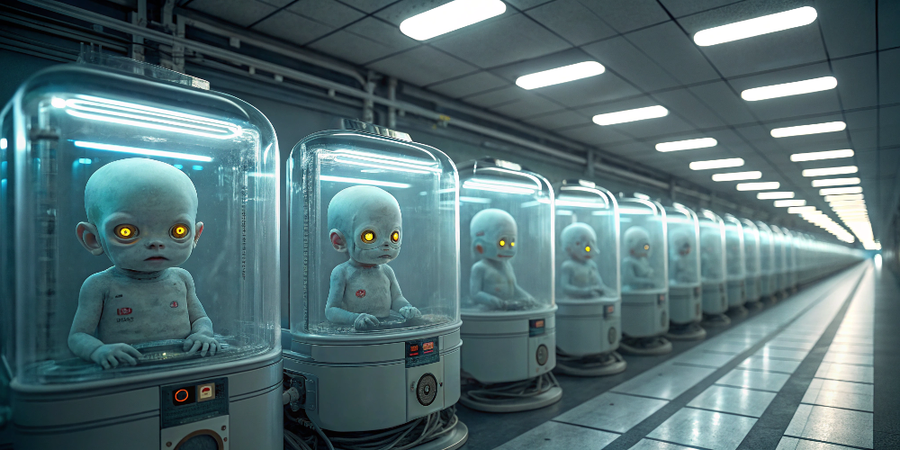 Глядя правде в глаза, можно сказать, что этот идеальный проект пока абсолютно невозможен... А значит, нас ждут человеческие фермы, где роботы будут выращивать нужных людей в необходимых количествах, или рост нецивилизованных популяций, которые ещё не обременены ни психологией, ни личным развитием, ни даже патриархатом, поэтому могут размножаться без всяких ограничений.