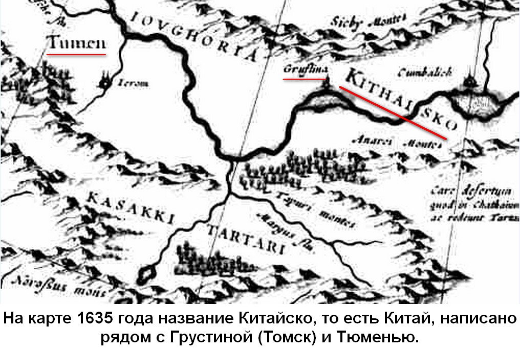 Дело в том, что во первых, в средневековье Китаем, Катаем и Каракитаем, называлась страна на юге Западной Сибири, что можно увидеть на средневековых картах Меркатора, Гондиуса, Сансона, Герберштейна и других авторов. Эта страна располагалась в Верхнем Приобье и неслучайно Телецкое озеро на всех картах называлось Китайским. От этого сохранилось множество гидронимов Китат и Катат. Ближайшие к Томску имеют истоки близ станции Сураново возле Тайги. Во вторых, значение Китая-Катая - это далеко расположенная земля (край земли), дальняя страна, и третье более древнее значение - высокое ограждение, огороженная страна.