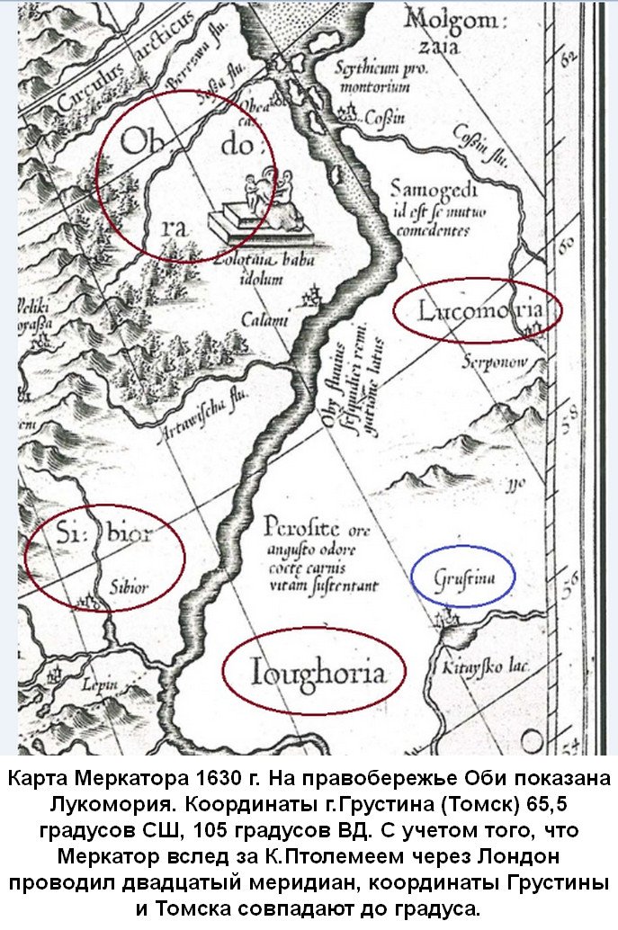 - Координаты Томска и Грустины совпадают до градуса. Одна из версий этимологии Грустины это ГроссТины (рядом жили готы). Тины и описывались как очень большой город. Если верить Низами, где-то в подземном городе Александр спрятал свои сокровища. А было у него около трех тысяч тонн золота. К сожалению, подземелья под Томском не изучаются, это "закрытые" объекты.