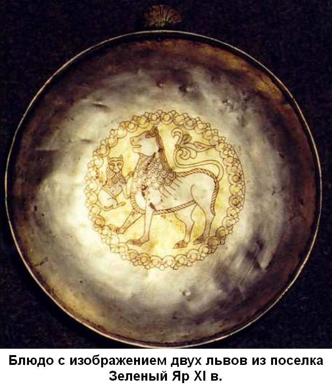 В Приобье обнаруживают множество артефактов, часть находок принадлежит к булгаро-хазарской группе народов, среди них хазарский серебряный ковш IX в. и серебряная голова чудища.