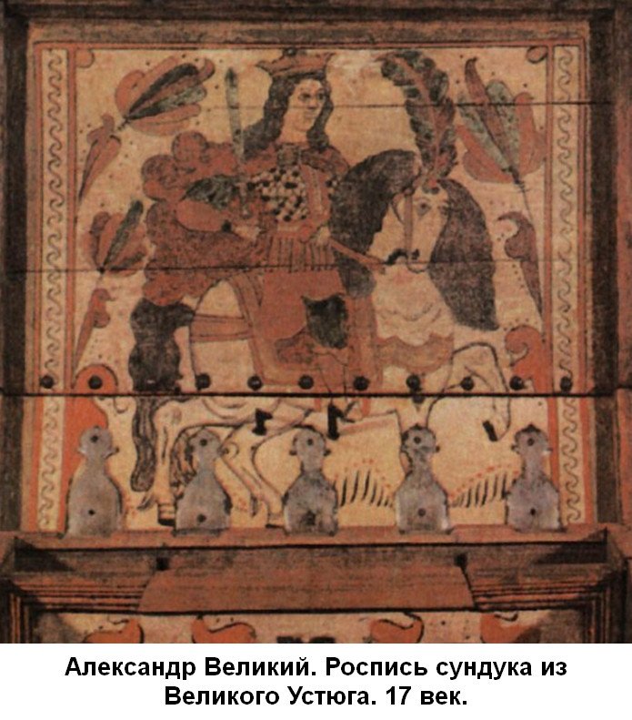 Изображений Александра на Руси обнаружено множество, не то, что в Индии. Это и рельеф сцены вознесения Александра на южном фасаде Дмитриевского собора во Владимире, и подобные же сцены на серебряных блюдах, "выловленных" рыбацким неводом в устье Оби.