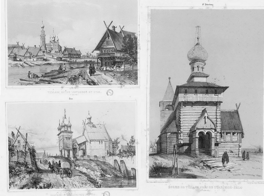 Вот, к примеру, ниже зарисовки Российских деревень с натуры, художника из Франции Дюрана. Он путешествовал и рисовал на средства Анатолия Демидова, который пригласил Дюрана из Франции как профи своего дела - он мог быстро зарисовывать натуру в деталях. Демидов был серьезным человеком, с естественнонаучным уклоном. На каждой литографии указана дата, когда она написана. Опубликованный Демидовым альбом Дюрана включает 100 рисунков.